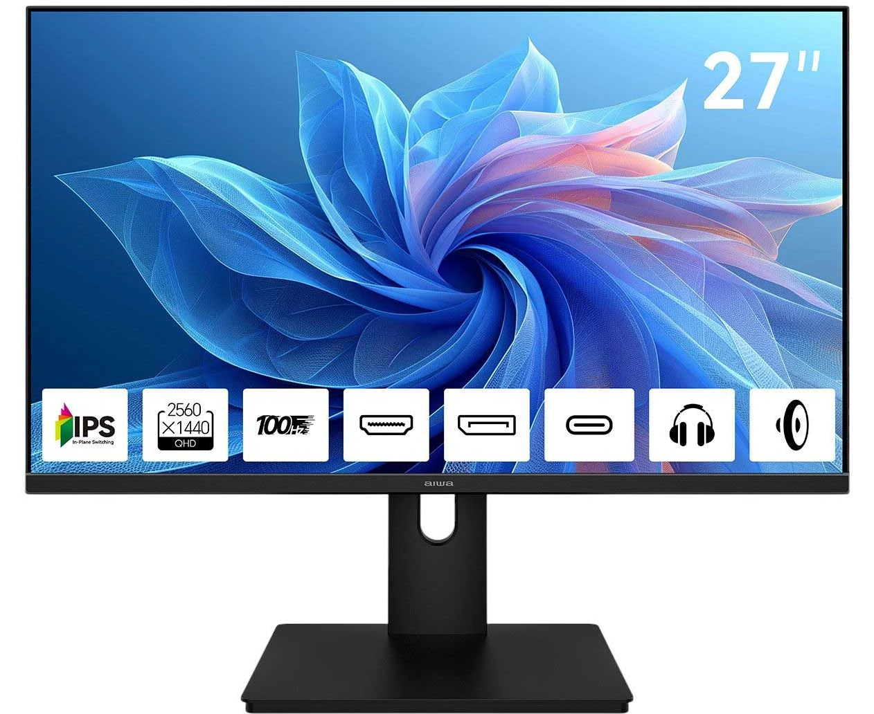 Монитор AIWA MQ271A Black IPS, 2560x1440, HDMI+DP+Type C 15W, 4 ms, 178пр./178пр., 300 cd/m, 1000:1, 100Hz, Spk, внутр БП