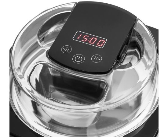 На панели управления вы можете выбрать время приготовления с помощью таймера на 45 минут. Конструкция мороженицы полностью разборная. Её легко мыть и собирать.