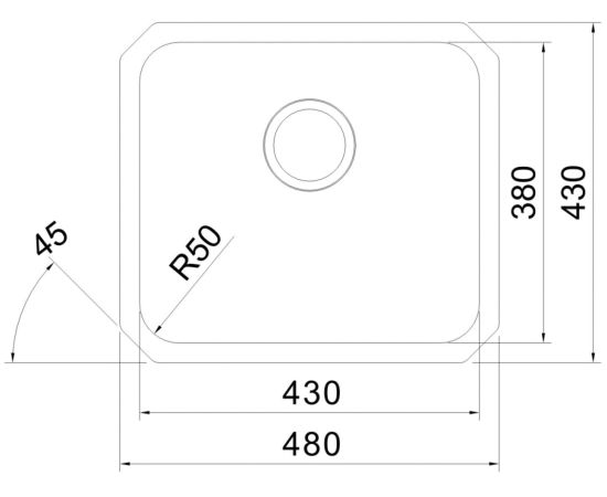 Вырез под мойку, мм