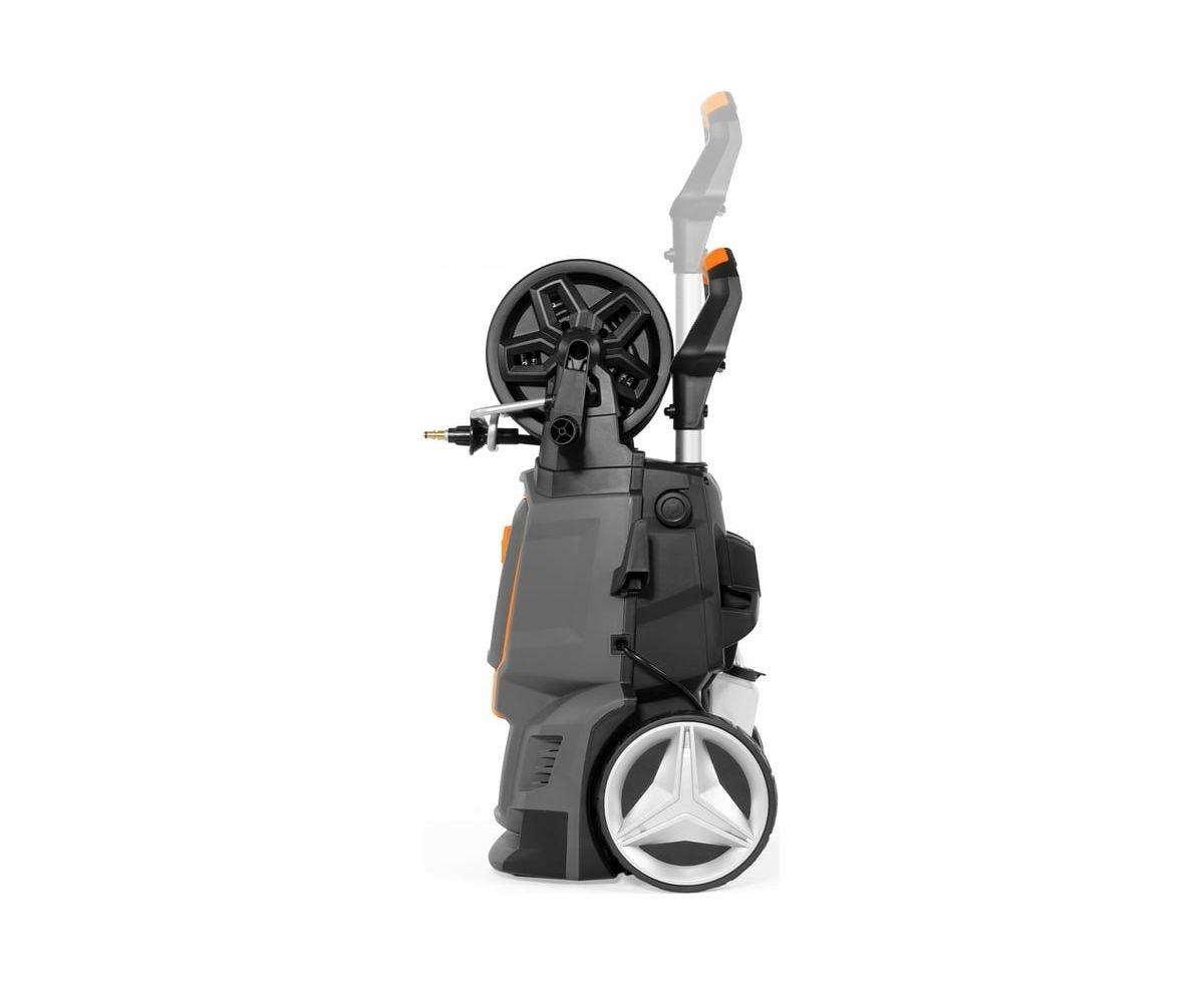 -Барабан для шланга Позволяет аккуратно хранить 8 метров шланга Облегчает размотку шланга, до необходимой длины Шланг высокого давления аккуратно наматывается на барабан, благодаря направляющей