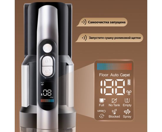 Преимущества Мощность всасывания 100 аВт, Самоочистка и сушка горячим воздухом, Съемный аккумулятор, Двигатель IPX8 мощностью 400 Вт, Комплектация 3 в 1, Портативная конфигурация для уборки мебели