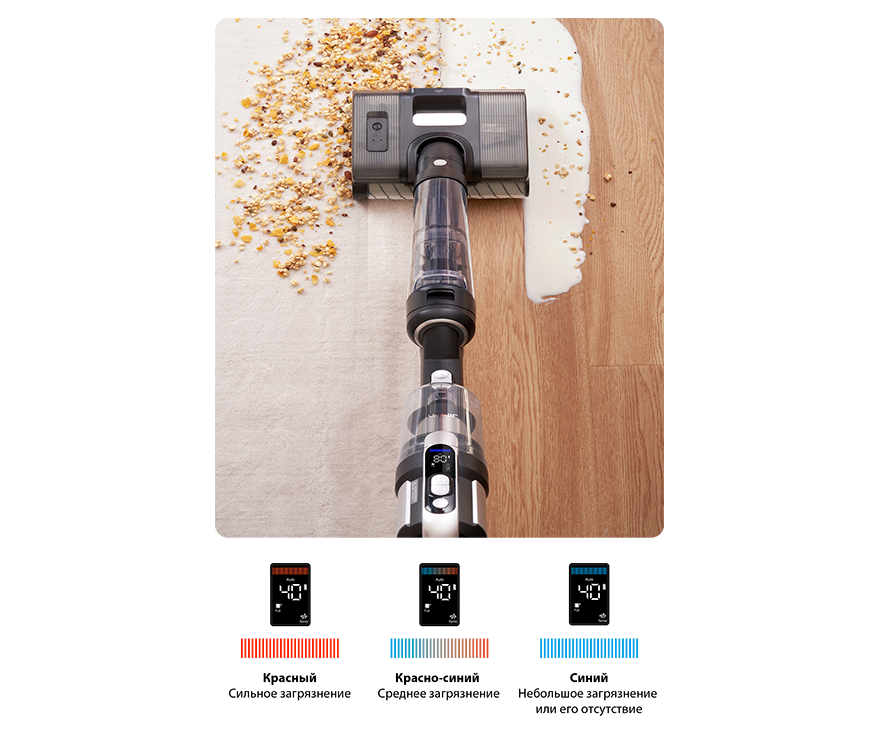 На LED-дисплее вы можете отслеживать уровень заряда, следить за индикатором чистоты пола и управлять режимами работы пылесоса. Дисплей оснащен функцией голосовых оповещений, позволяющих вам оптимизировать уборку. Голосовые оповещения доступны на 5 языках, включая русский.
