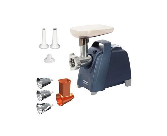 Мясорубка с электронным управлением. Макс. мощность 2000 Вт Защита двигателя от перегрузки. Максимальная производительность – 4 кг/мин. Приставка для набивки колбас (2шт.). Приставка кеббе. Приставка-овощерезка АМ11.03-4 (4 барабана). Лоток. 3 решетки (с мелкими, крупными и продолговатыми отверстиями). Отсек для хранения шнура питания и принадлежностей. Реверс.