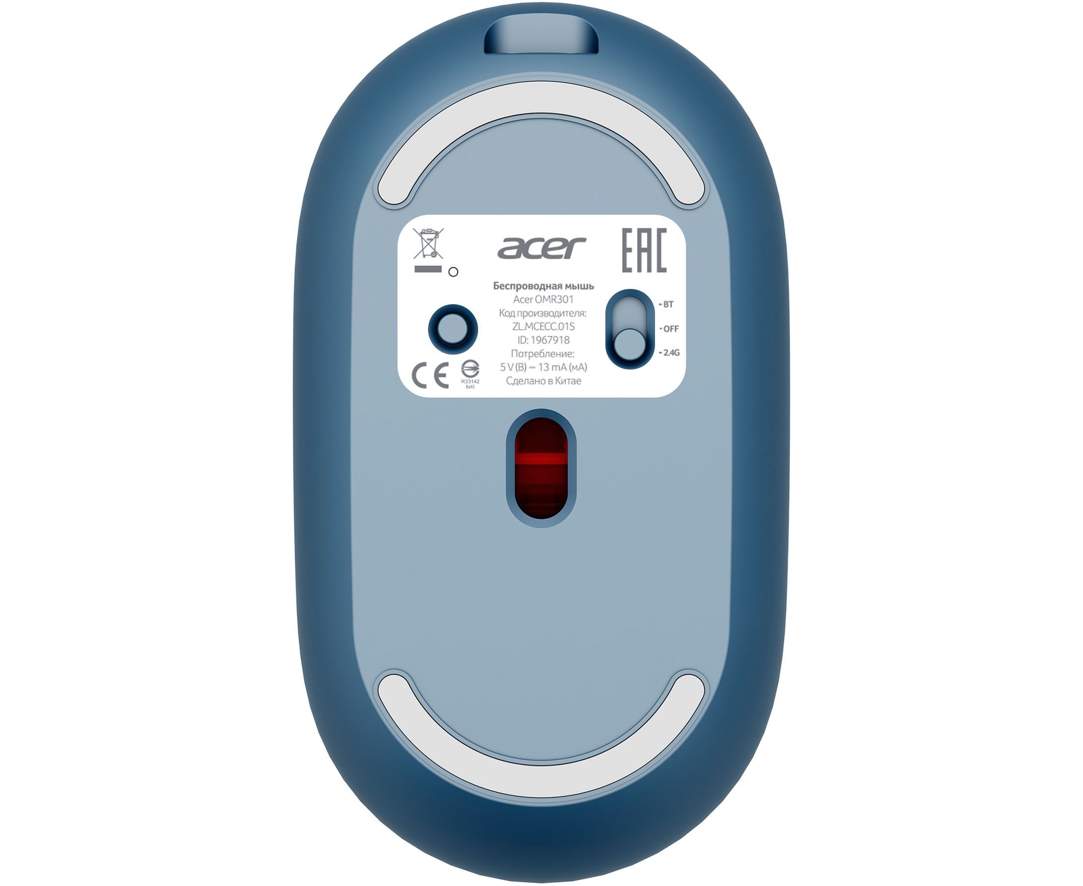 Мышь Acer OMR301 синий оптическая (1600dpi) беспроводная BT/Radio USB (4but)