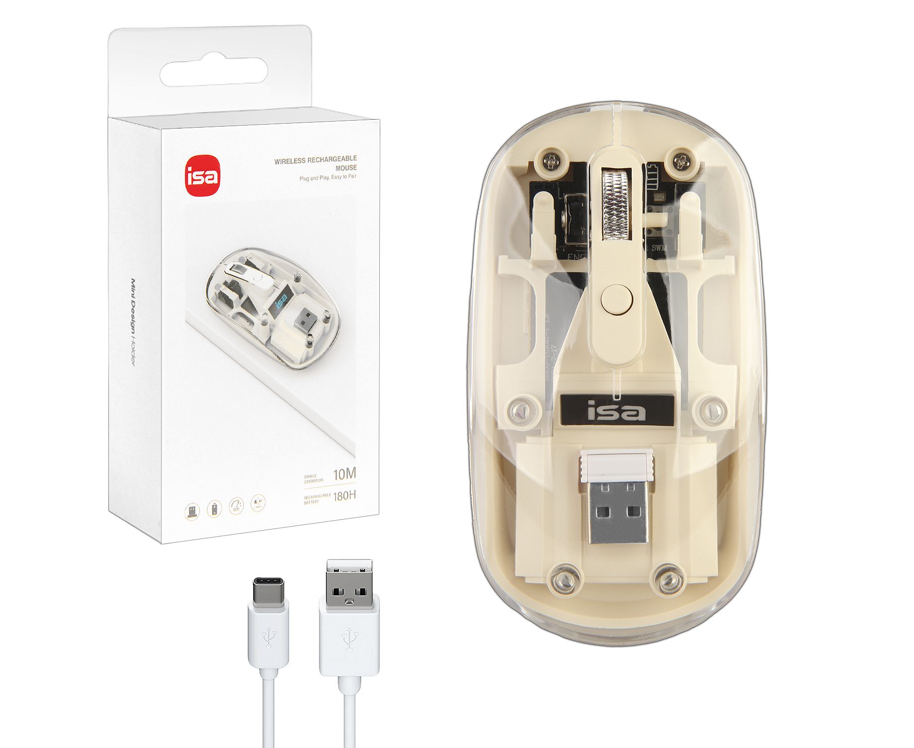 Мышь беспроводная (2.4G, Bluetooth) WM-8 ISA (Прозрачно-бежевая)