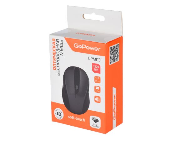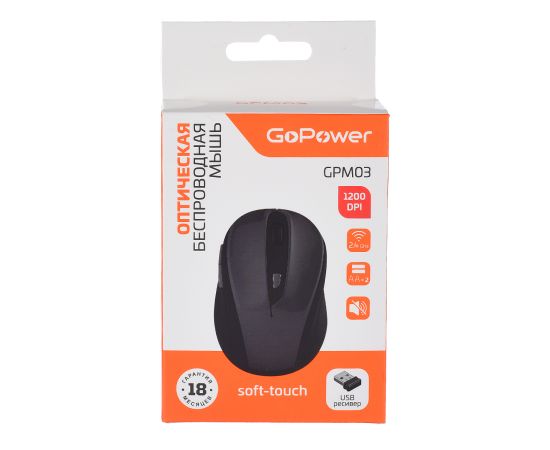 Мышь беспроводная GoPower GPM03 классическая USB бесшумная Soft-Touch черный (1/100)