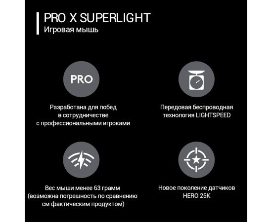 Мышь беспроводная Logitech G PRO X SUPERLIGHT черный (25600dpi) USB (4but)