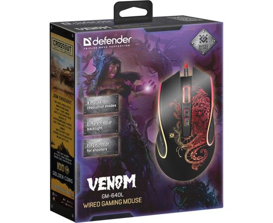 Мышь DEFENDER Venom GM-640L Gamer Black, 8 кн., 800-3200 dpi, подсветка, оптическая, проводная