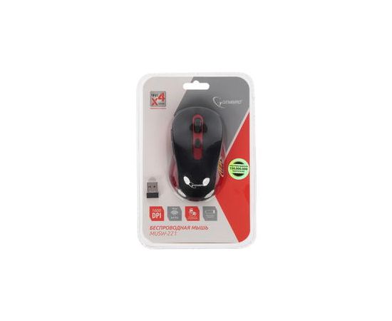 Мышь Gembird MUSW-221-R Black/Red, Wireless, USB, 5кн.+колесо-кнопка, 2.4ГГц, 1600 dpi