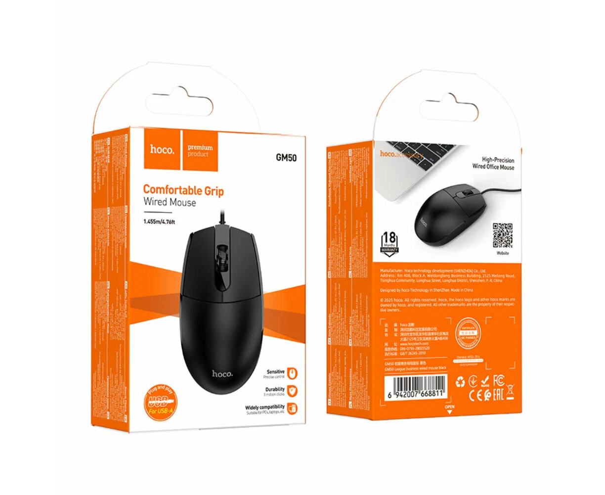 Мышь HOCO GM50 League business wired mouse (черный)