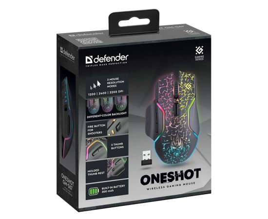 Мышь оптическая беспроводная Defender Oneshot GM-067 3200dpi, 300 мАч, 7D игровая (black) (238166)