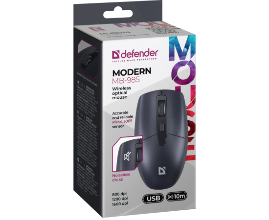 Мышь DEFENDER MB-985 4D,800-1600dpi, бесшумн 52985 (черный)