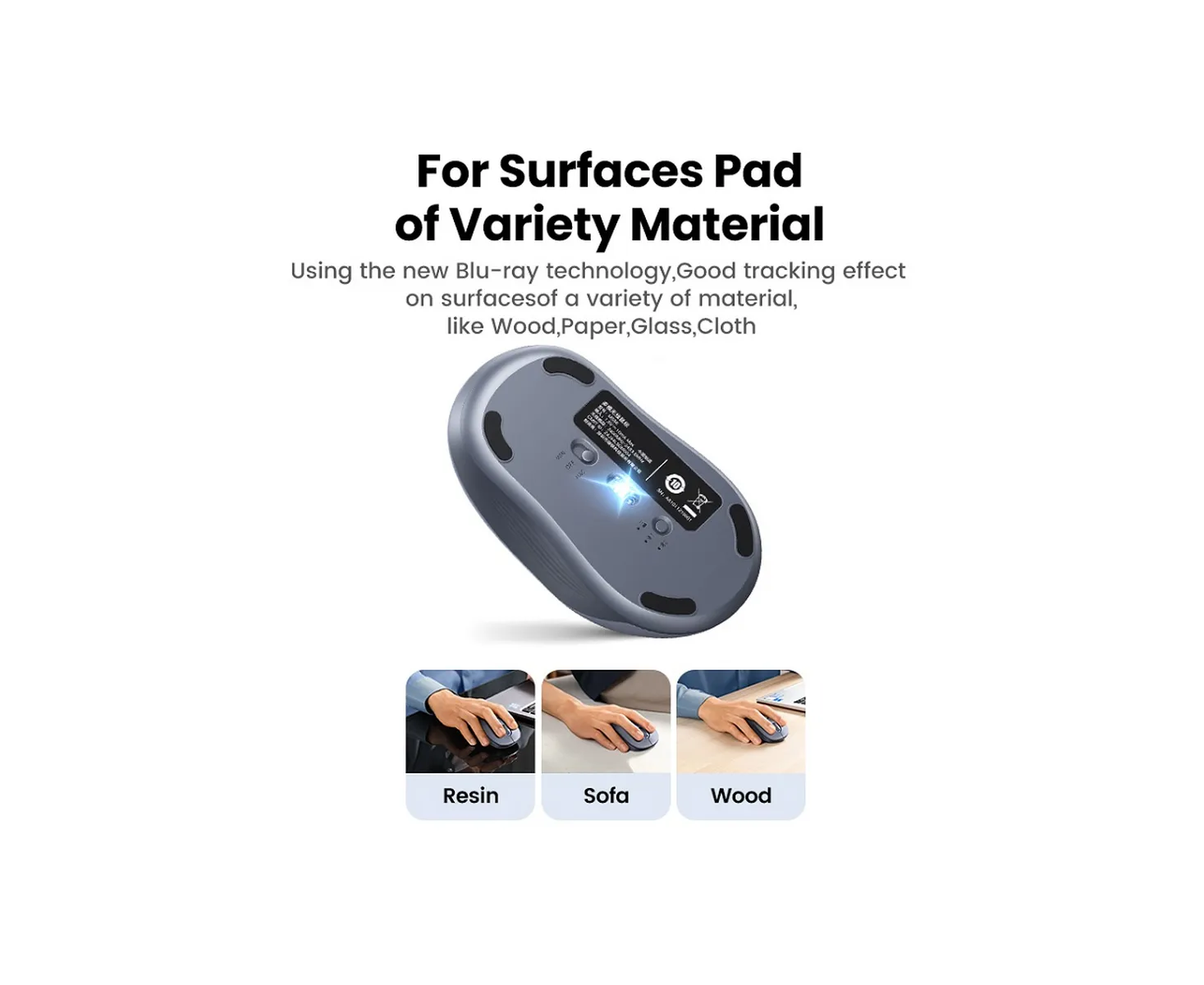 Мышь UGREEN M556 (75129) Multi-mode Wireless Mouse BT GHz серый