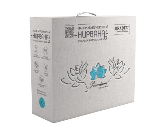 Акупунктурный набор премиум-качества отличается функциональностью и полностью натуральными материалами. Набор включает в себя массажный коврик, подушку и сумку. Цветы жизни – шипы уникальной формы – позволяют сделать массаж более приятным и комфортным, а наличие медицинского сертификата гарантирует эффективность и безопасность.