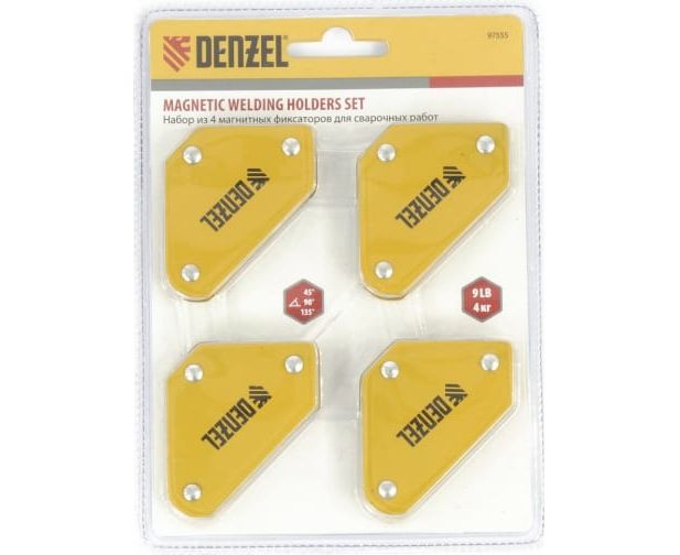 Набор из 4 магнитных фиксаторов для сварочных работ Denzel 97555 идеально подходит для выстраивания небольших металлических конструкций. Уголки обеспечивают надежную фиксацию деталей весом до 4 кг при выполнении сварочных и паяльных работ, поэтому работать можно в одиночку без чьей-либо помощи. При одновременном использовании всех фиксаторов из набора можно выстроить сразу 4 точных угла конструкции.