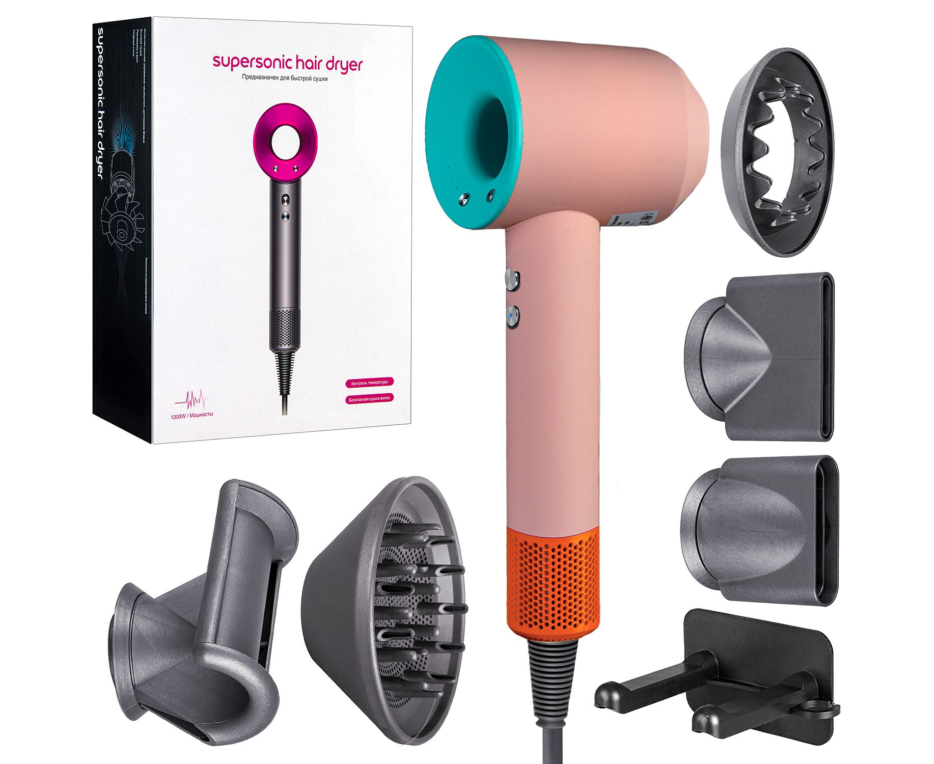 Набор фен Painted Pottery Pop, 1350 Вт , 3 метра (Розовый)