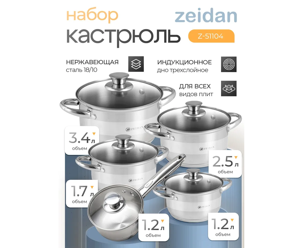 Набор посуды ZEIDAN Z-51104 10 предм