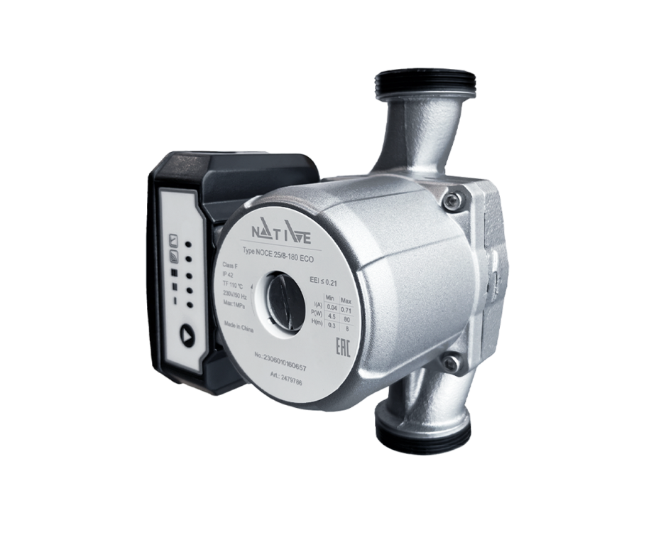 Циркуляционный насос Native NOCE 30/12-180 ECO - энергоэффективное оборудование, созданное для использования в системах отопления, кондиционирования и промышленных циркуляционных системах. Он отличается высокой эффективностью благодаря мокрому ротору и резьбовому соединению.
