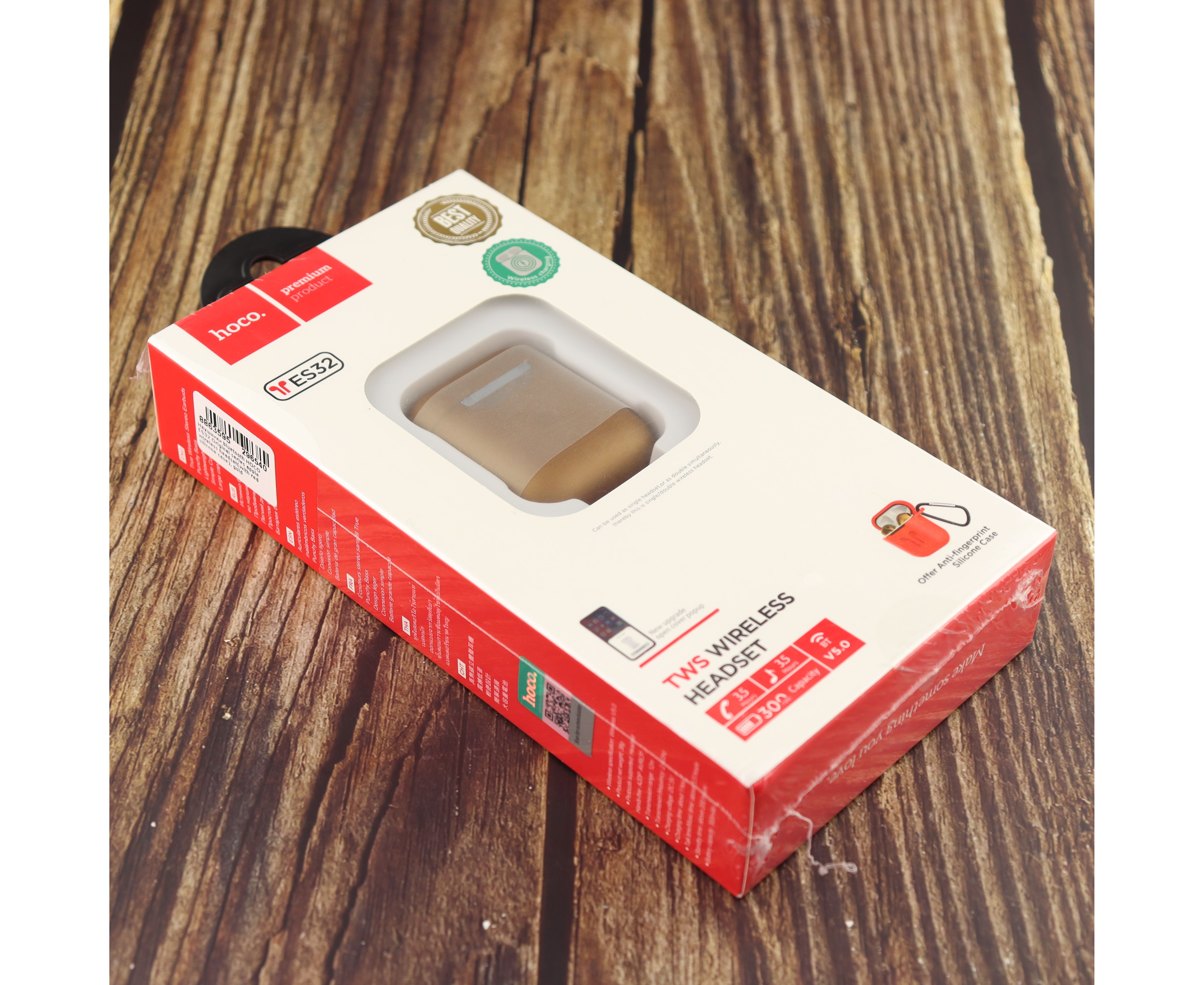 Наушники bluetooth HOCO ES32 Original series apple wireless headset(with red silicone case), gold