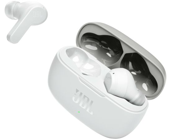 пара наушников JBL Wave 200TWS, чехол с функцией зарядки, зарядный кабель USB-С, 3 пары амбушюр разных размеров, гарантийный талон/предупреждение, краткое руководство пользователя/паспорт безопасности