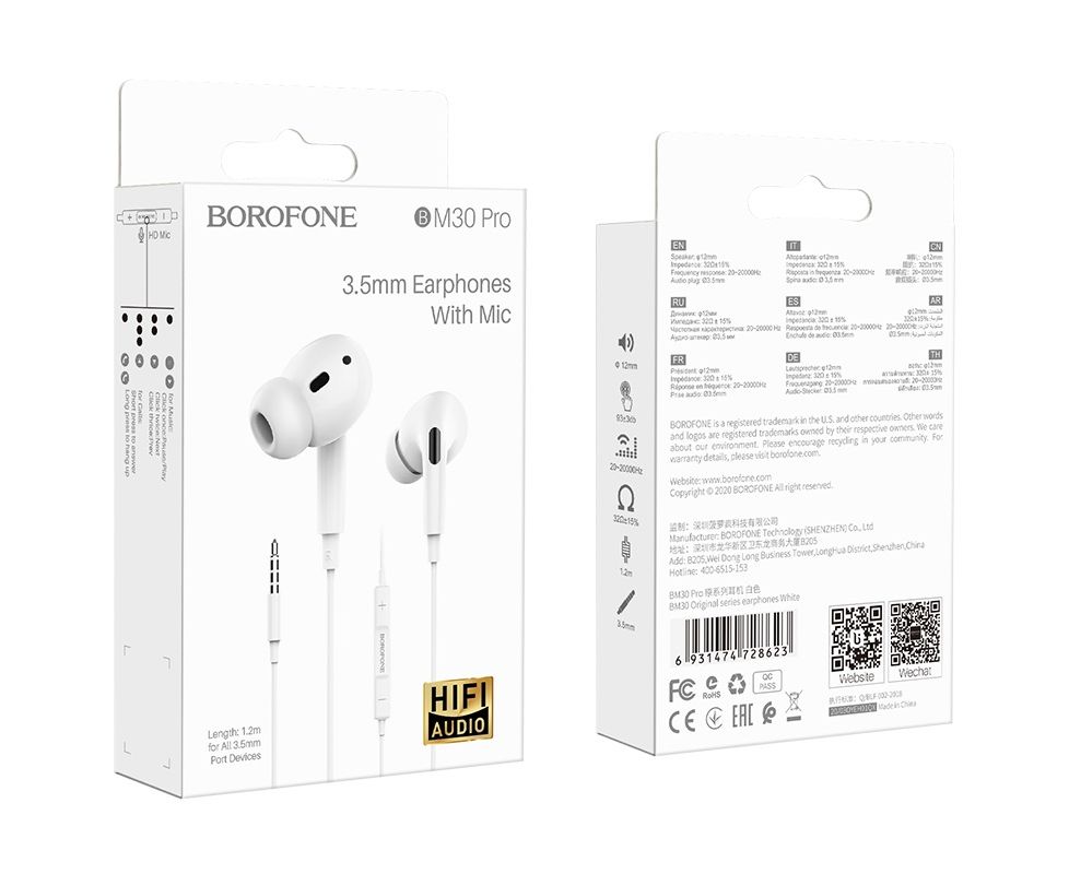 Наушники BOROFONE BM30 Pro Original series earphones (белый) (акция)