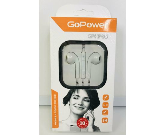 Наушники GoPower GPHP05 (00-00022770) вставные белый