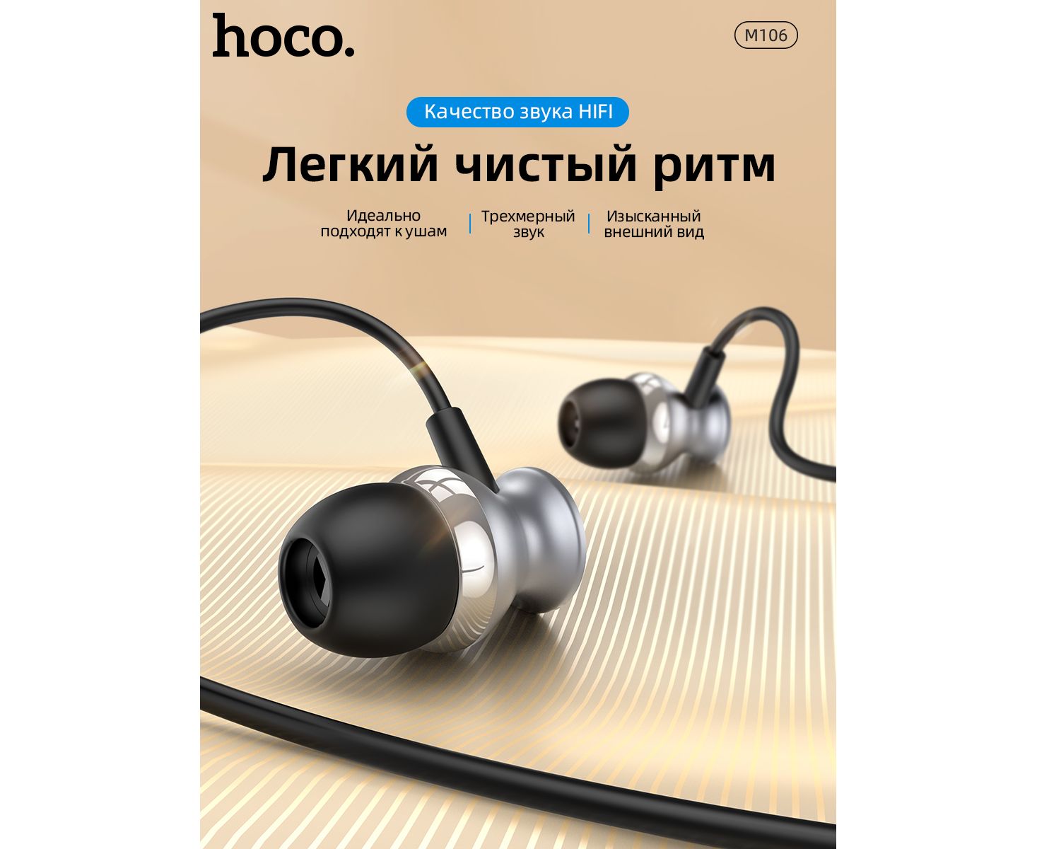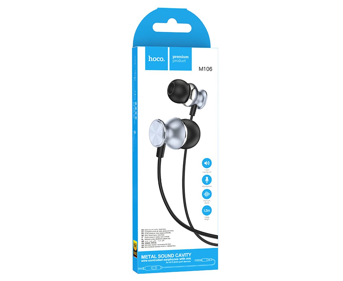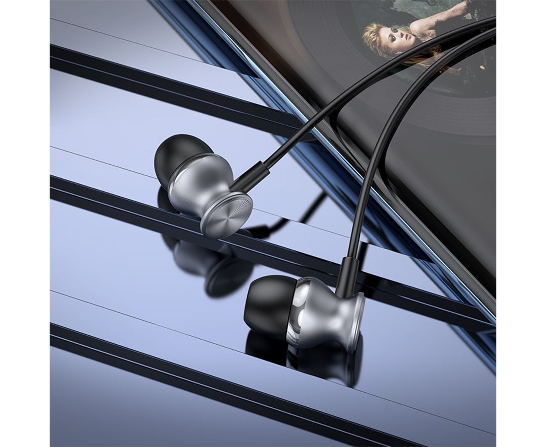 Наушники M106, Fountain metal universal earphones, HOCO, вакуумные, серые