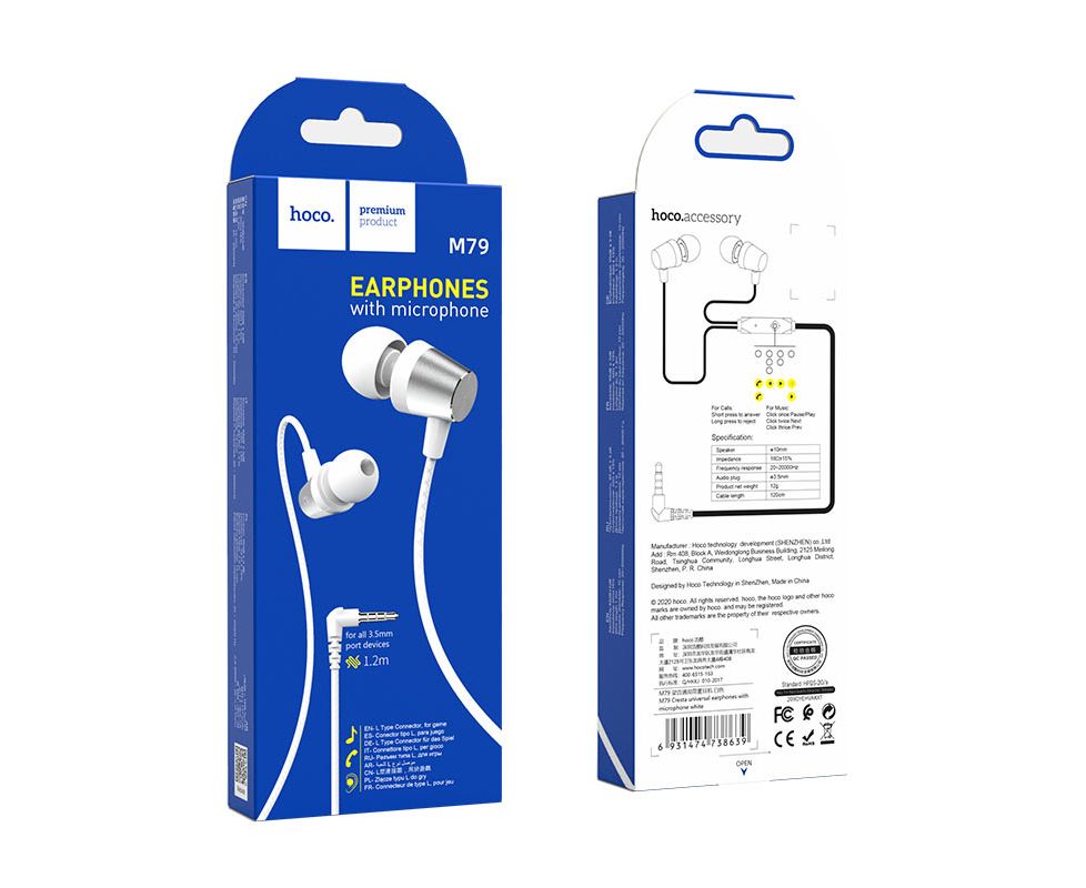 Наушники HOCO M79 Cresta universal earphones with microphone (белый)