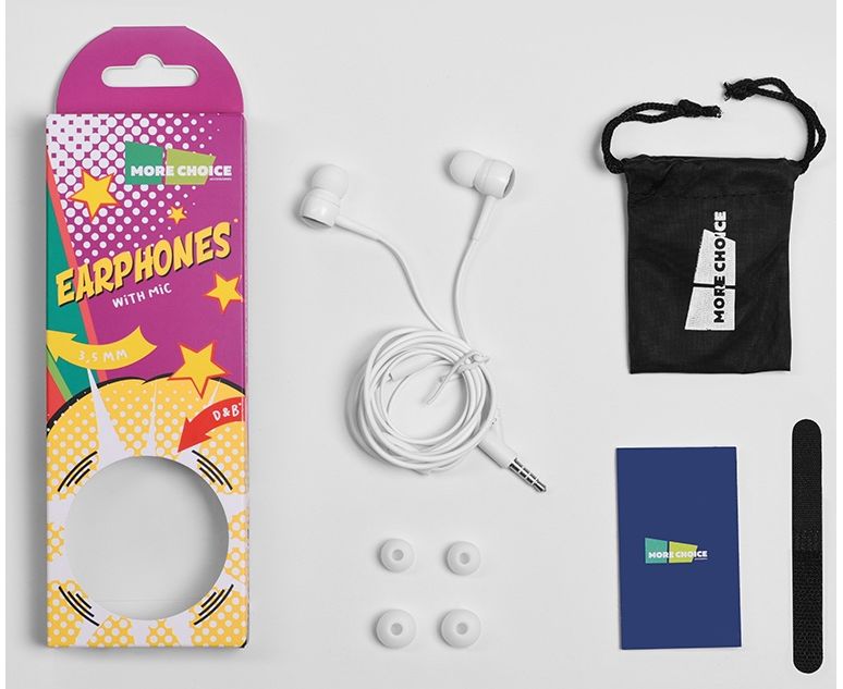 Наушники вакуумные AUX разъём с МК и рег.громкости длина 1.2м More choice G21 (White)