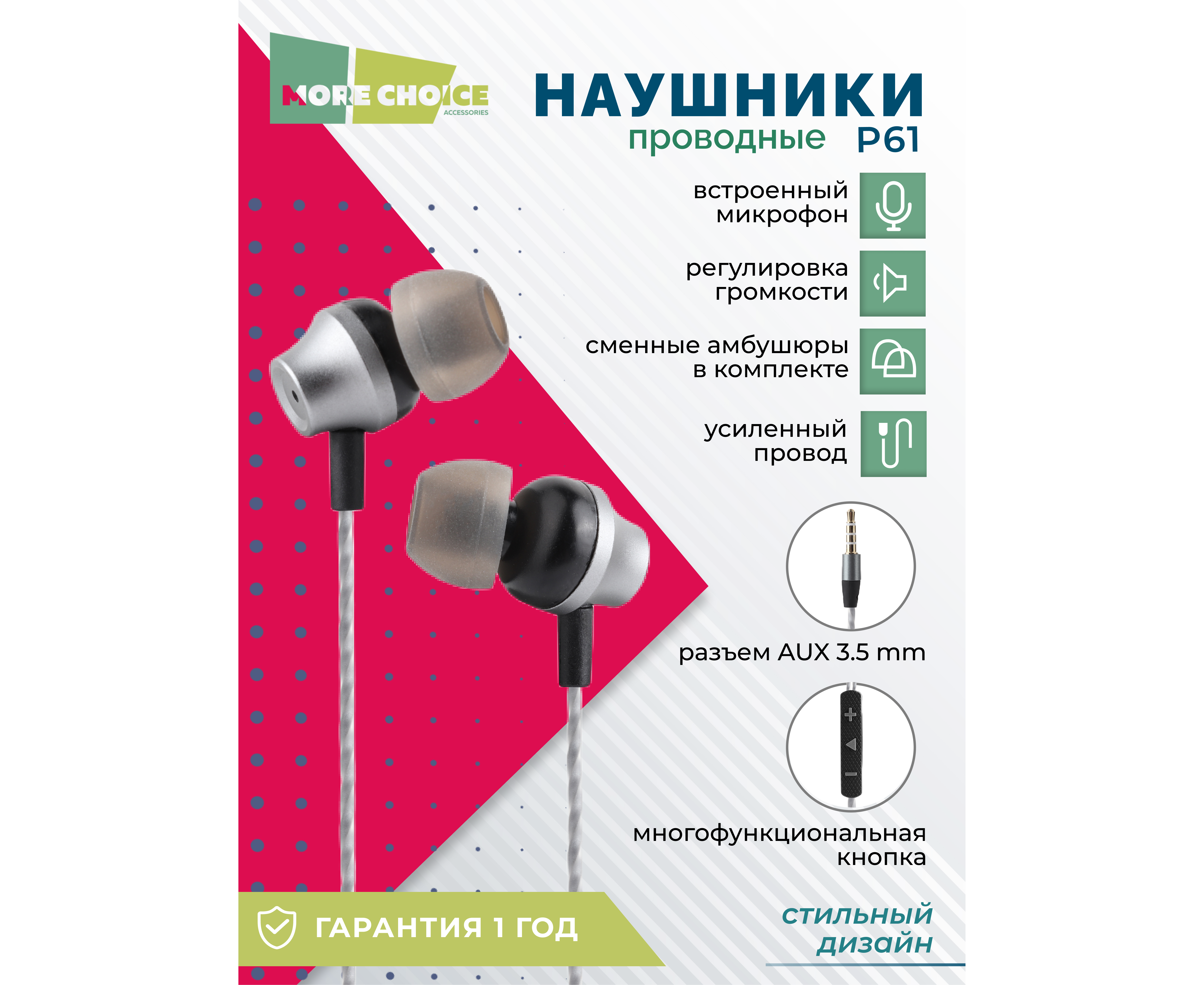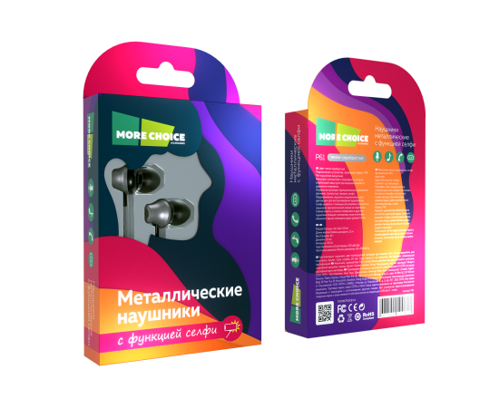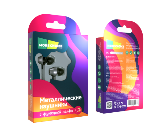 Наушники вакуумные AUX разъём с МК и рег.громкости длина 1.2м More Choice P61 (Black Dark Silver)