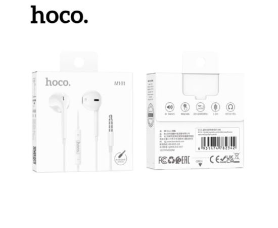 Наушники внутриканальные, HOCO M101, AUX разъём с МК длина 1.2м, цвет: белый (142/852)