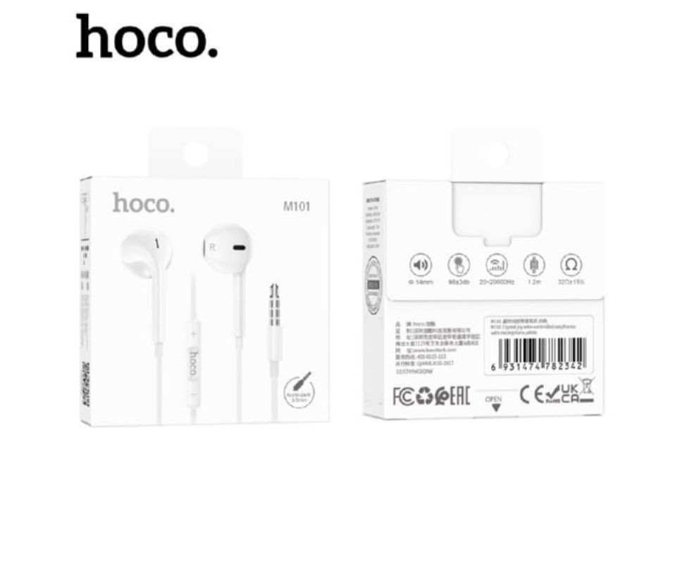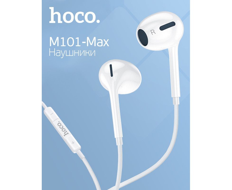Наушники внутриканальные, HOCO M101, AUX разъём с МК 1.длина 1.2м 2. цвет: белый (142/852)