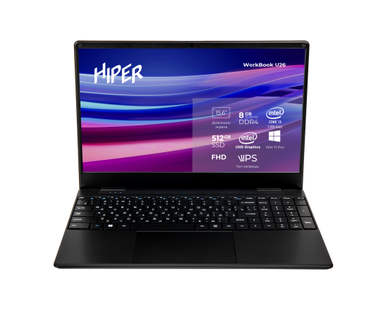 Ноутбук HIPER Workbook U26 15.6"(1920x1080 IPS)/Intel Core i3 1215U(1.2Ghz)/8192Mb/512SSDGb/noDVD/Int:Intel UHD Graphics/Cam/BT/WiFi/70WHr/war 1y/1.5kg/Dark Grey/Win11Pro. / U26-15FII3123R8S5WPG /