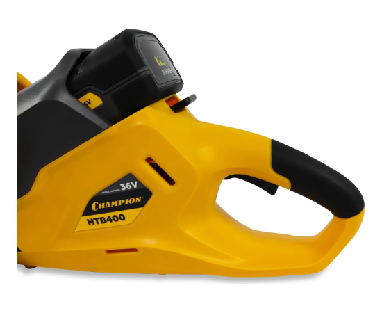 Аккумуляторные ножницы Champion 36 В, 4 Ач, Li-ion 550 мм, 3,1 кг, 60 мин, 28 мм, 2800 ход/мин, без АКБ и ЗУ HTB400 подходит для ухода за кустарниками, небольшими деревьями и живыми изгородями.
