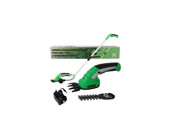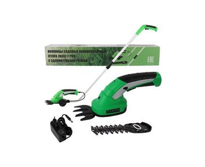 Ножницы садовые аккумуляторные ZITREK ZKGS7.2 Pro - многофункциональный инструмент с 2 насадками, используемый для финишной обработки газона и ухода за кустами, а также вьющимися растениями. Удлинительная ручка с органами управления позволяет работать, не наклоняясь. Для контроля уровня заряда предусмотрен светодиодный индикатор. Замена насадок производится без применения дополнительного инструмента. Оснащен кнопкой блокировки от случайного включения.