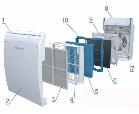 Воздухоочиститель Dantex D-AP300CF 64876464 пропускает воздух в помещении через 5 ступеней очистки.
