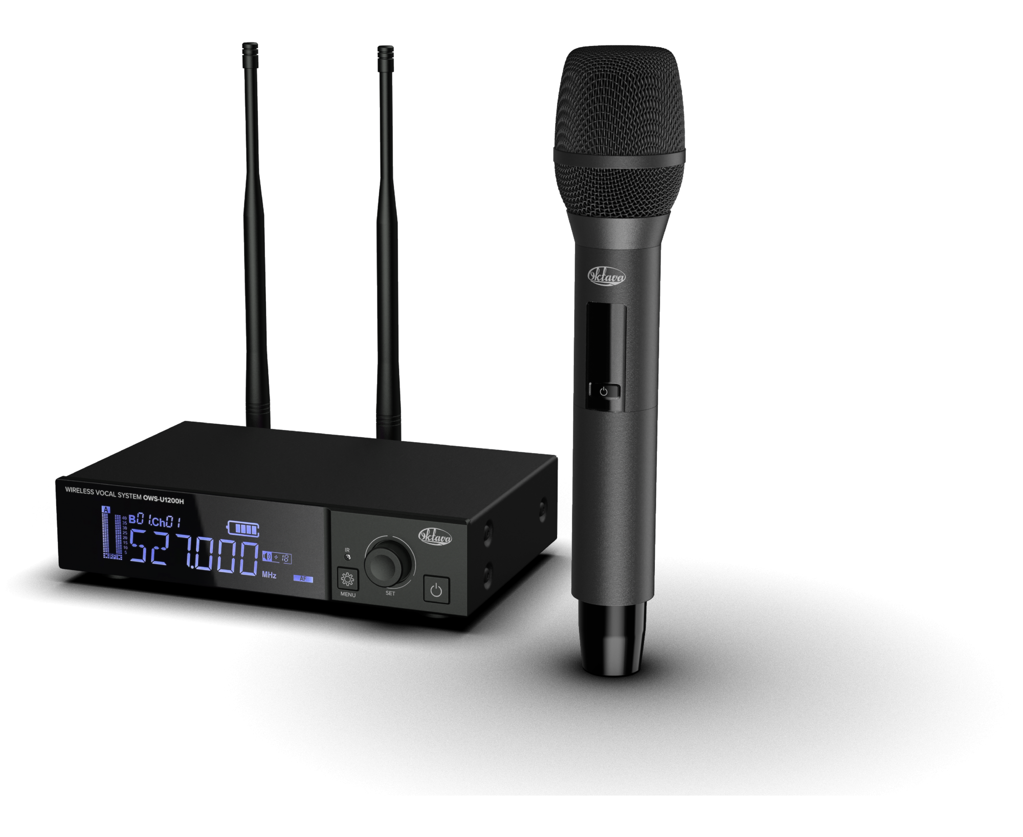 Октава OWS-U1200H Беспроводная вокальная радиосистема с одним ручным передатчиком в брендированном кейсе это система с аналоговым выходом звукового сигнала, оснащенная цифровой модуляцией типа /4 DQPSK, что дает ей следующие преимущества:
