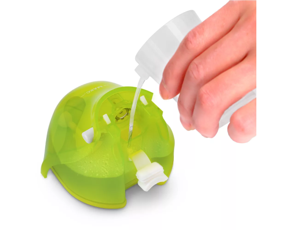 Резервуар для воды ёмкостью 260 мл оборудован специальным отверстием для залива воды внутрь отпаривателя. Оно защищено прорезиненной крышкой, чтобы вода не вытекла при работе отпаривателя. В комплекте с устройством идёт мерный стаканчик.