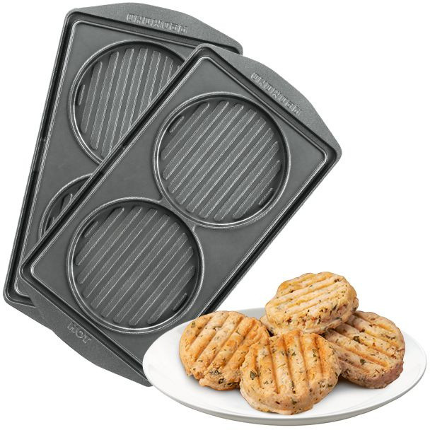 Описание: Универсальные съемные панели для любого мультипекаря REDMOND серии 6. Позволят вам быстро и качественно прожарить котлеты из мяса, рыбы или птицы для аппетитных домашних бургеров из полностью натуральных и свежих продуктов. Размер одной панели 133х250х15 мм. Антипригарное покрытие.