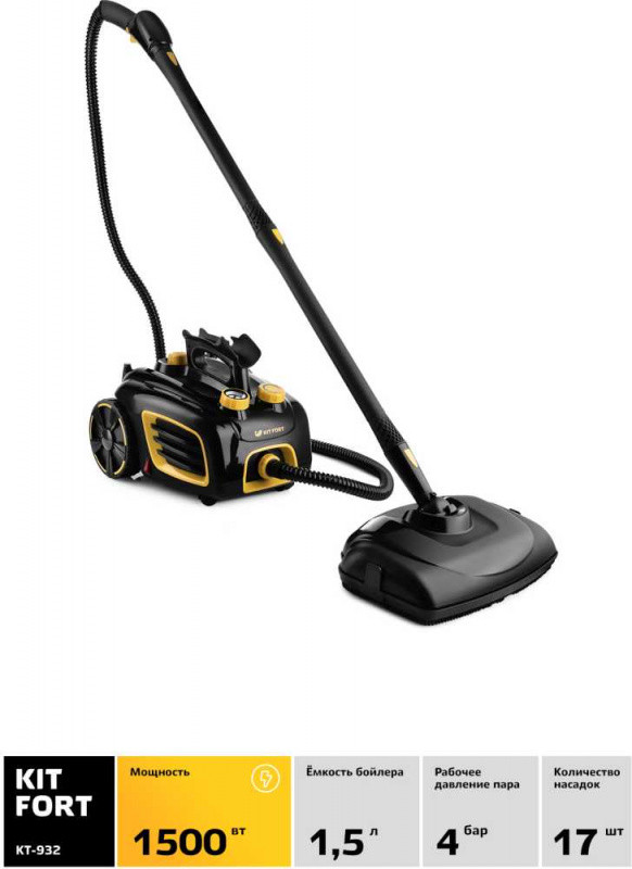 Пароочиститель Kitfort КТ-932 черный/оранжевый