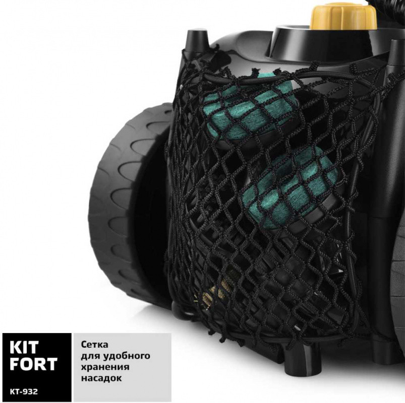 Насадки в комплекте: Струйная насадка. Угловая насадка. Треугольная щетка. Насадка на треугольную щётку. Скребок. Маленькая нейлоновая щётка. Большая нейлоновая щётка. Латунная щётка. Щётка-скраб. Щётка для пола. Насадка на щетку для пола. Тряпка для пола. Удлинительная трубка.