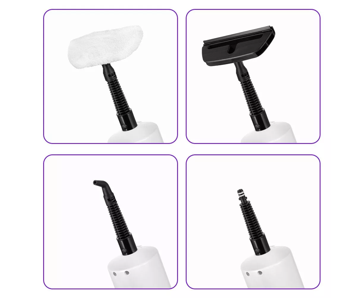 Множество насадок, которые идут в комплекте с паровой шваброй, справятся с труднодоступными местами и сложными поверхностями.