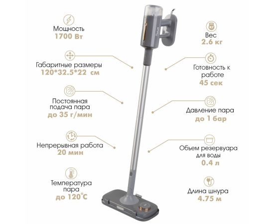 Представляем вам потрясающую паровую швабру VLK Rimmini-8200, которая сделает уборку вашего дома быстрой, эффективной и безопасной. Швабра имеет мощность 1700Вт, что позволяет достичь высокой производительности и идеальной чистоты.