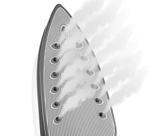 Подошва утюга выполнена из алюминия с керамическим покрытием, поэтому она хорошо скользит и легко очищается. Такой утюг не сделает затяжек на одежде и лишних складок.