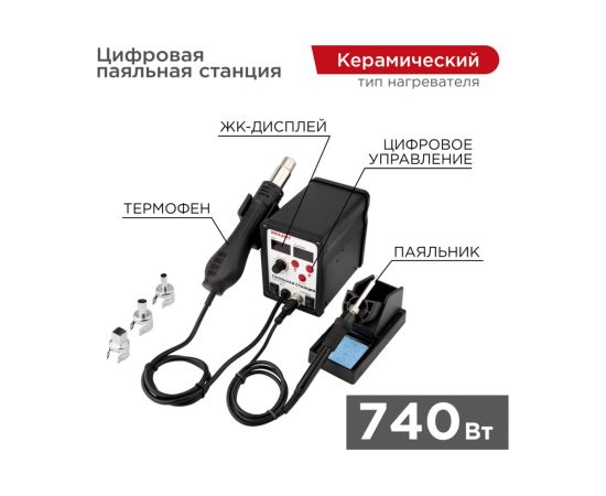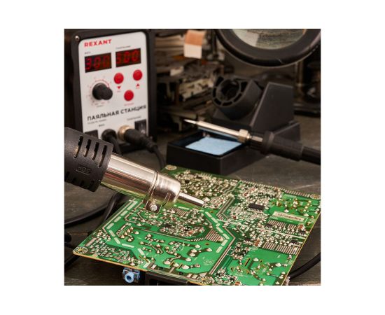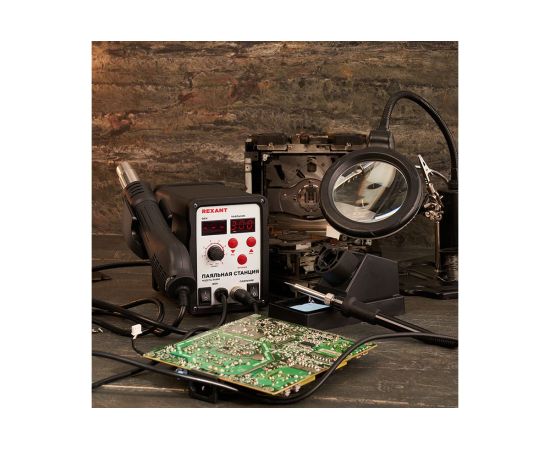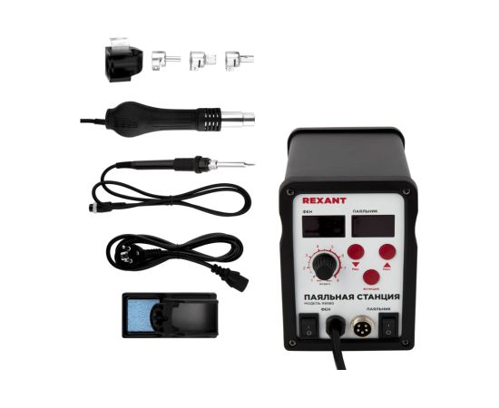 Паяльная станция REXANT 12-0721 2 в1 паяльник + термофен, с цифровым дисплеем, 150-500 С