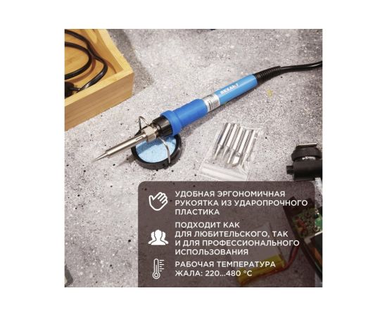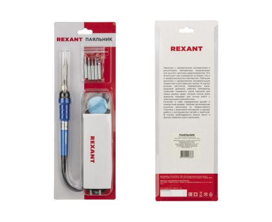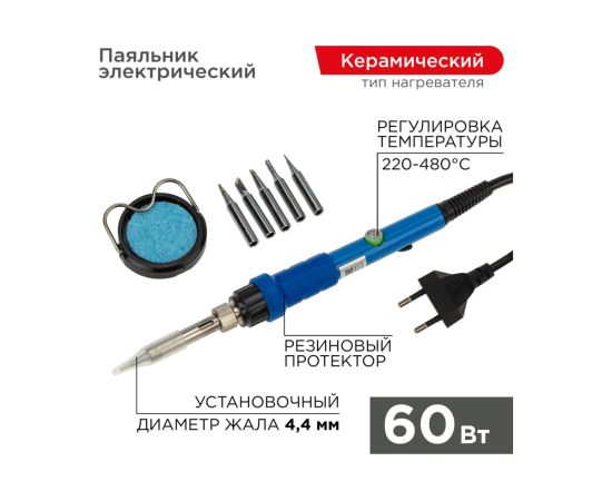 Паяльник Rexant 12-0614 подставка, набор из 5 жал, керамический нагреватель, 220-480 C, 220В/60Вт