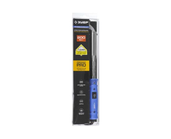 Преимущества ЗУБР ПРОФЕССИОНАЛ с выкл., пласт. ручка и долговеч. жало, 200Вт, клин 55301-200