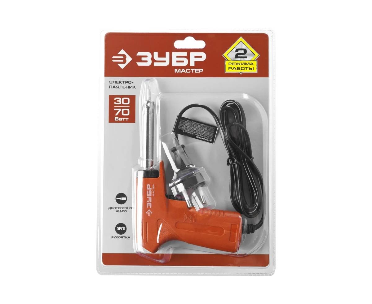Преимущества ЗУБР МАСТЕР пистолетная рукоятка, 30-70Вт конус 55404
