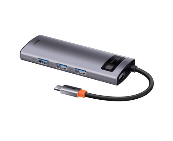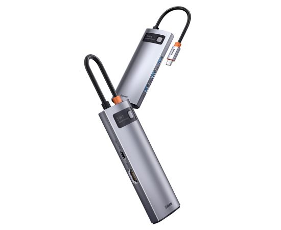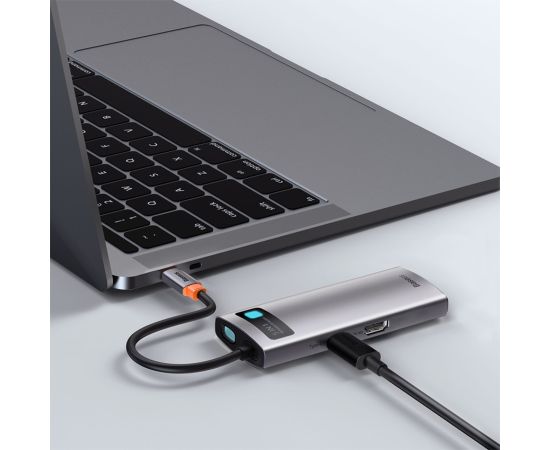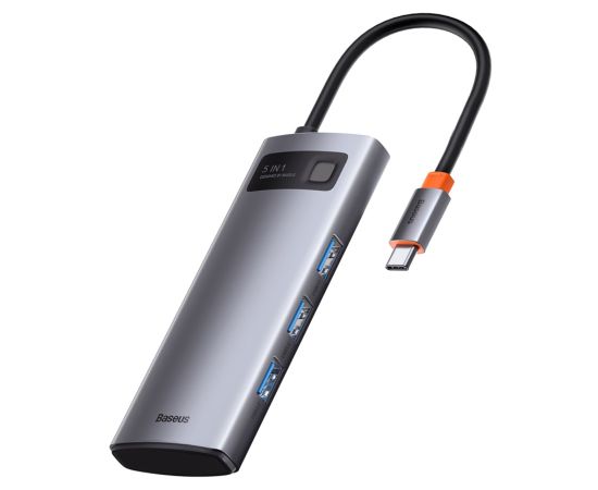USB HUB разветвитель BASEUS Metal Gleam Series 5 в 1 Type-C (m) - 3xUSB3.0 + Type-C PD + 4К HDMI, серый металлик