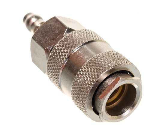 Переходник рапид – ёлочка 6 мм с обжимным кольцом 6-11 мм Elitech 0704.018200 применяется для соединения различных частей пневмосистем. С одной стороны фитинг имеет ёлочку — 6 мм, с другой быстросъемное соединение — рапид мама. Созданная конструкция обладает высокой надежностью и герметичностью.
